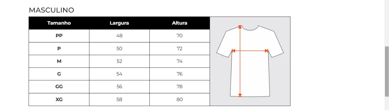 As combinações acima não possuem estoque.